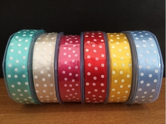 DOPPIO RASO 25 MM. POIS BIANCHI X 20 MT.
