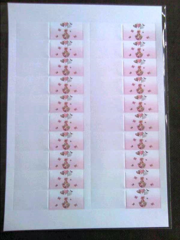 BIGLIETTO BOMBONIERA FOGLIO DA 20 PZ. NASCITA ROSA