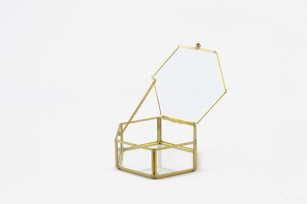 COFANETTO ESAGONALE VETRO/METALLO ORO 13.5X12.8 H5.2