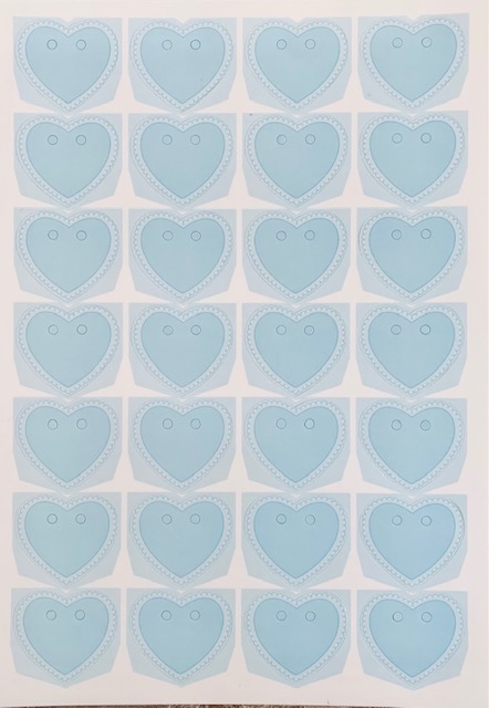 FOGLIO CON 28 CHIUDIPACCO CUORE AZZURRO 45X40 MM.