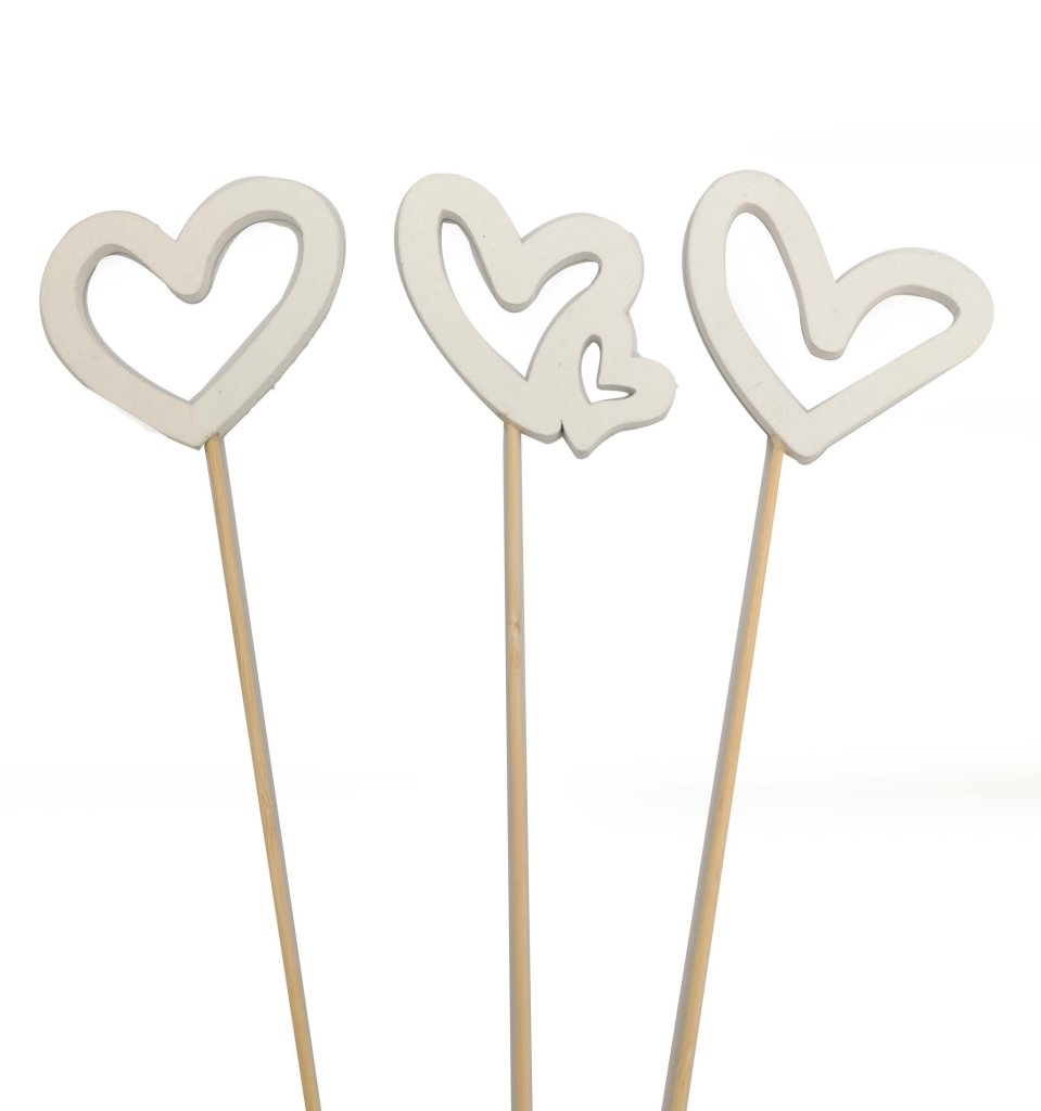 PICK SAGOMA CUORE LEGNO BIANCO 3 MIX DES D7 H35 - CF 18 pz